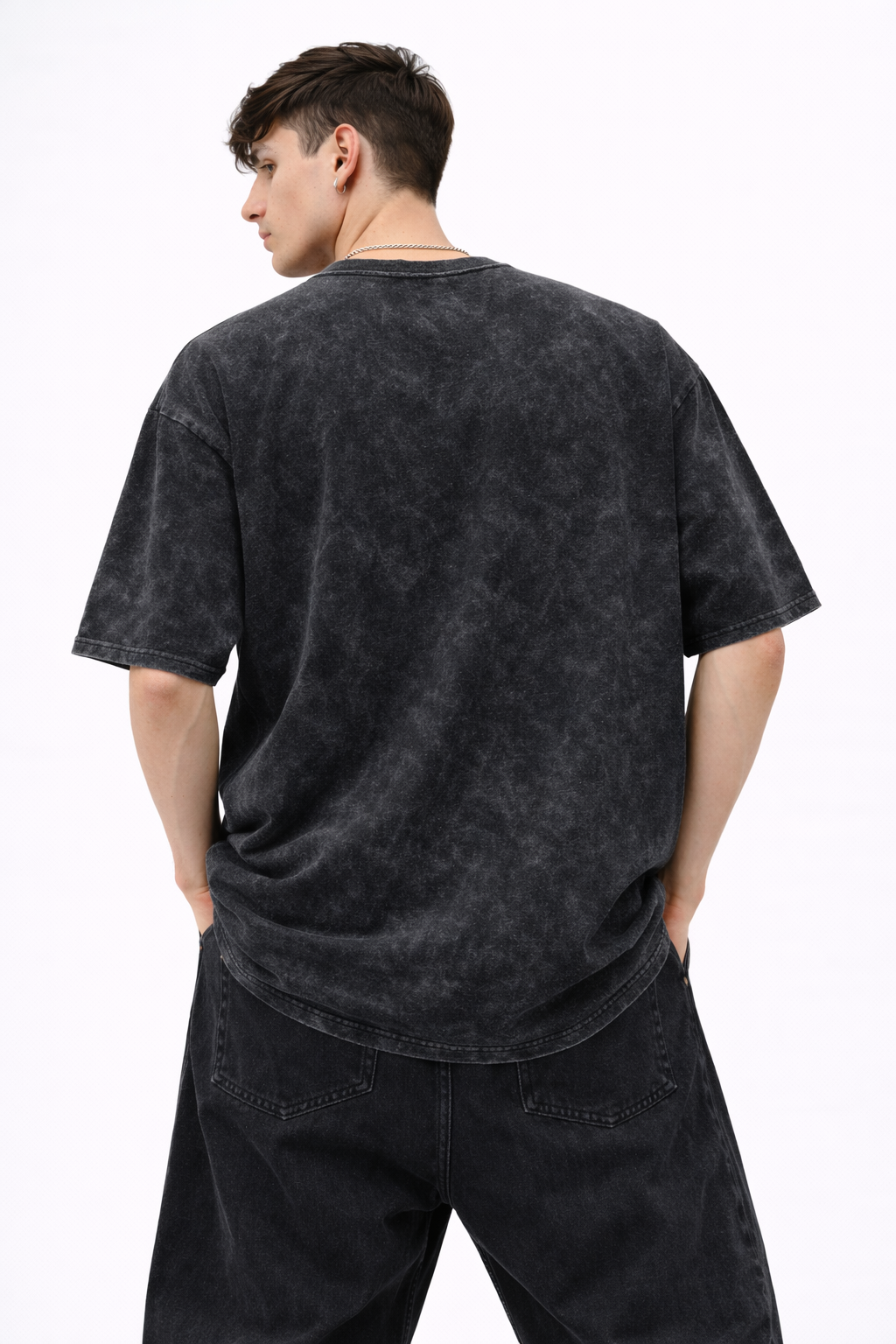 Finished in a washed-black vintage texture with an oversized street fit, this piece hits hard whether you’re moving through the city or standing still and staring back.